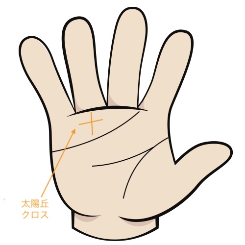 - 場所: 薬指(太陽指)の付け根にある、ふっくらとしたエリア(太陽丘)に現れる、X字型または十字型の線です。