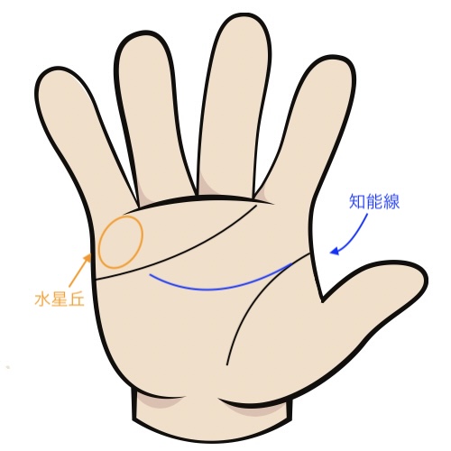 この知能線が、小指の付け根の下にあるふくらみ、すなわち「水星丘」に向かって伸びているのが「水星丘に向かう知能線」の特徴です。