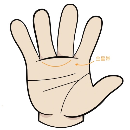 **「金星帯(ヴィーナスベルト)」は、人差し指と中指の間から始まり、薬指と小指の間にかけて弧を描くように現れる線です。この線は、ローマ神話の愛と美の女神「ヴィーナス(金星)」にちなんで名づけられており、その人の「愛」「魅力」「官能」「感受性」「美意識」**といった性質を象徴するとされます。