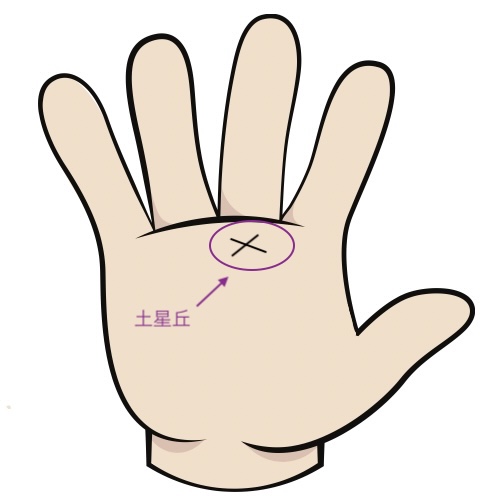 • 場所: 手のひらの中央上部、中指(土星)の付け根の膨らんだ領域(土星丘)に現れる十字(十)やクロス(X)の形をした線です。