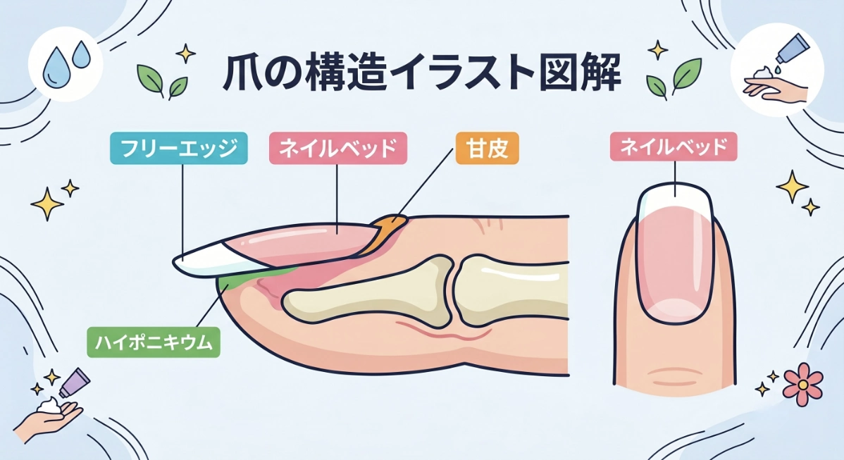この記事では、ネイルベッドとハイポニキウムの関係を図解するようにわかりやすく解説し、今日から実践できる具体的なケア方法までご紹介します。爪のコンプレックスを解消したい方は、ぜひ最後まで読んでみてください。